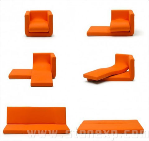 這一款組合家具,它可以根據(jù)需要變?yōu)橐粋€單人沙發(fā),或是一個雙人床。這樣的家具對于空間比較小的家庭是個不錯的選擇。