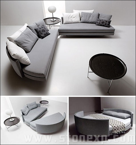 圓形的床看上去很時尚,但它帶給你的驚奇不只是這一點,其實這是一張沙發(fā)床。這張床可以從中間分開,作為一組沙發(fā)來使用,對于現(xiàn)在喜歡時尚、喜歡流行風潮的朋友,這樣的床,絕對可以讓那些來你家的訪客大加贊賞。