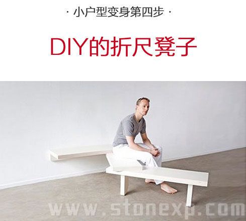 帥哥坐的這個凳子,可以像折尺一樣收縮到一起,乖乖的貼到墻上,只占用一小溜的空間. 在沒人坐的時候,你甚至可以把它當作一個小隔板來放些小東西. 而一旦有人需要座位,它立刻就可以被拉開,變成一長條的凳子,一圈看下來,這凳子比帥哥還要更帥一籌了。