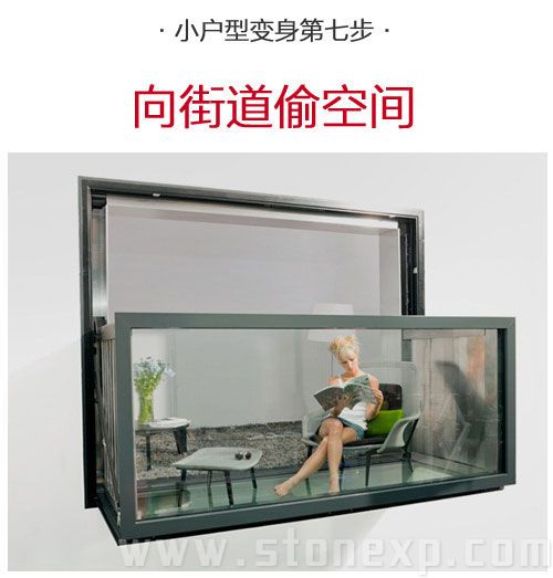 這只是一個概念設計,不過誰知道在接下來的幾十年里能不能變成現(xiàn)實呢?科技發(fā)展的速度遠遠超乎我們想象,裝上這樣的窗戶可以滿足我們擁有一個陽光露臺的愿望——如果小戶型的房子原本是沒有陽臺的話。折起來是窗戶,打開來是陽臺~ 實在是奇思妙想。