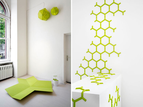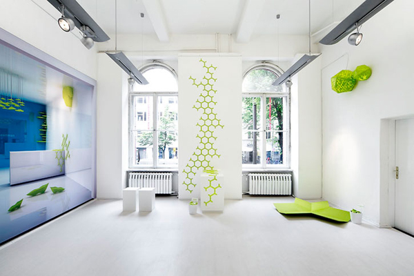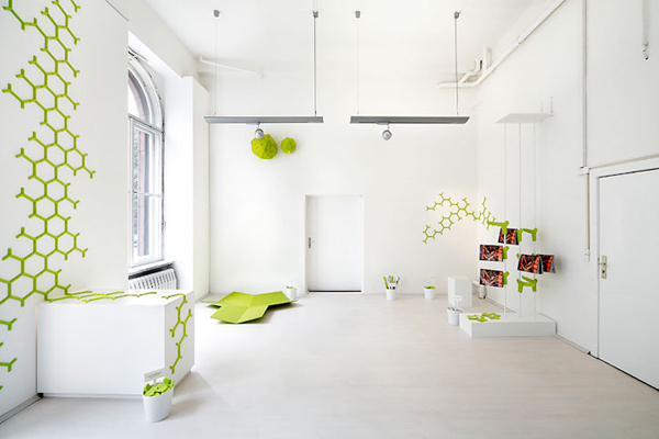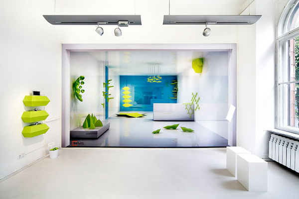 Epiphytes仿生創(chuàng)意空間是由Dan Pearlman公司操刀打造的新概念、以仿生為主題的室內(nèi)裝飾方案,顧名思義,Epiphytes中文譯義為附生植物,設(shè)計(jì)者期望借鑒大自然的奪天造化,營(yíng)造出充滿綠意的人居生活。翠綠墻飾在純白墻面上搖曳,暖暖太陽光線在窗臺(tái)涌入。整體格調(diào)如新生般亮潔,洋溢著一種現(xiàn)代的簡(jiǎn)約創(chuàng)意風(fēng)格。