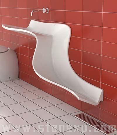 與傳統(tǒng)面盆不同,這款產(chǎn)品并沒有設(shè)計下水口,而是通過蜿蜒曲折的主體設(shè)計將廢水直接通過地漏排出。不僅外形美觀,富于創(chuàng)意。而且下半部分還可以用來沖洗拖把。