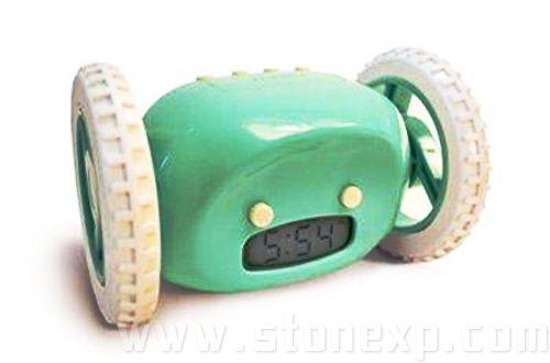 在為叫你起床效果不佳的鬧鐘而煩惱嗎?我告訴你,現(xiàn)在你不用愁了,因為有了clocky.呵呵,帶上了兩條腿(輪子)的鬧鐘,怎么樣?你不起來,clocky可是到處亂跑,吵得你恨不得把它關(guān)掉,可是卻逮不到它。等你逮到并關(guān)掉它了,你也醒了。這作用大吧?它可是很耐摔的……