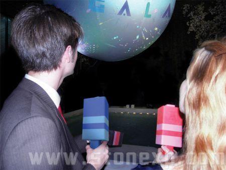 聚會的時候少不了用彩紙裝點會場,重要人物出場的時候往往會從高空噴灑彩帶,激起聚會高潮。不過這樣可有些浪費資源,還增加了清潔難度,要想獲得同樣的效果又節(jié)約資金,可以考慮使用這款電子彩紙裝飾球。整個裝飾球相當于一款晶瑩剔透的球形屏幕,通過特殊的麥克風的控制,可以在它表面模擬出彩紙噴灑的景象,同時還能顯示字母。