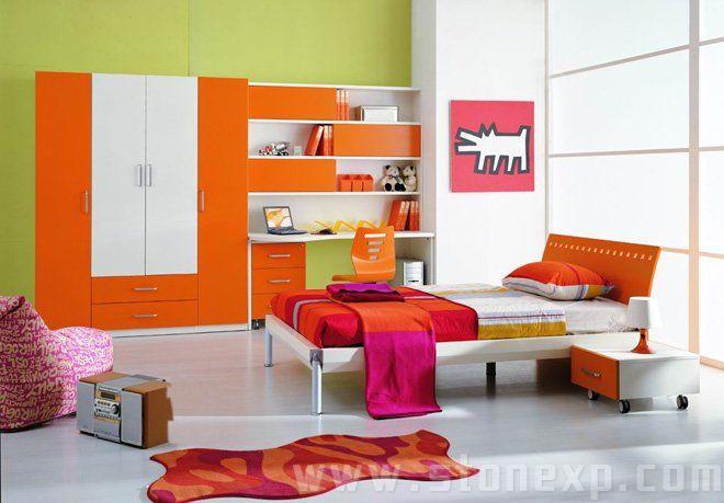 孩子會(huì)像大人一樣對(duì)某些顏色情有獨(dú)鐘。你可以選擇顏色素淡或簡單的條紋或方格圖案的布料來做床罩,然后用色彩斑讕的長枕、墊子、玩具或毯子去搭配裝飾“素淡”的床、椅子和地面。其中長枕、墊子等的外套可以備有多種顏色,可以在不同季節(jié)、孩子不同年齡時(shí)更換枕套和墊子的顏色,這樣的做法比較經(jīng)濟(jì)、實(shí)用。