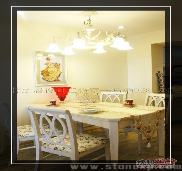 餐廳里白色的餐桌、碎花的布藝、精美的吊燈、從新加坡帶回來的十字繡,雖然地方不大,但一樣不少,忙碌的工作過后坐在這里用餐,一定會感到很溫馨吧!