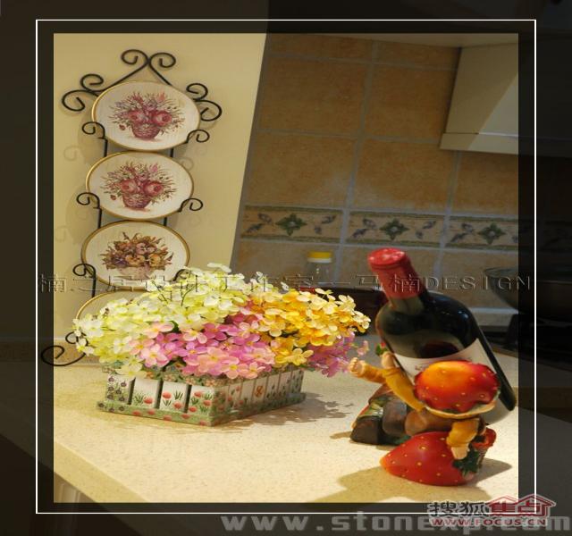 廚房以白色調(diào)為主,給人一種優(yōu)雅干凈的感覺。王小姐特別喜歡廚房里帶有花樣圖案的瓷磚貼面,不僅點綴了大面積的色塊,也呼應了整體的室內(nèi)風格。吧臺的設計,起到了區(qū)分空間的作用,也給生活增添了一份情趣。