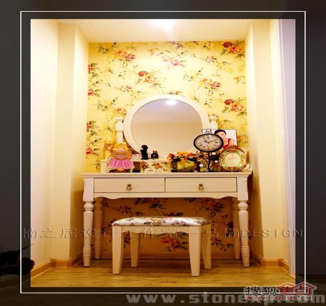 沿著實木樓梯上了二樓,首先看到的是一個梳妝臺,這個空間利用的非常好,在這里可以不受干擾地盡情打扮自己,愛美的女性是不是深有體會呢?
