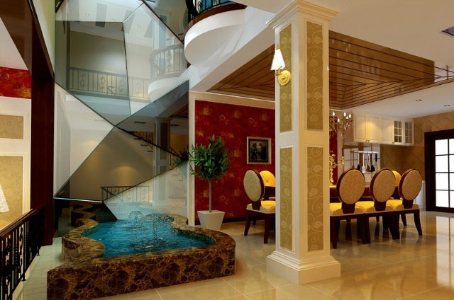 設(shè)計解析:本案客戶為私營公司的老總,三口之家,男主人、女主人及才從國外回來的兒子,因人口比較少,面對200平米并贈送90平米地下室的聯(lián)排別墅,客戶的要求是希望在休閑的同時達(dá)到文化的深度,以感性的手法去詮釋休閑的概念,最大程度的表現(xiàn)質(zhì)樸、自然、精致的休閑文化韻味。整體方案采取歐式風(fēng)格為主題,簡單而沒有多余的造型,卻在關(guān)鍵部位渲出精彩,簡潔而整體,大膽的運用了紅、金及藍(lán)色,大氣而流暢。盡量多的運用深色家具,控制使用油漆、膠合板等存在有害物質(zhì)的材料數(shù)量,既營造了閑逸氛圍又保證了環(huán)保性能,可謂一舉兩得 ,典雅而不繁鎖。