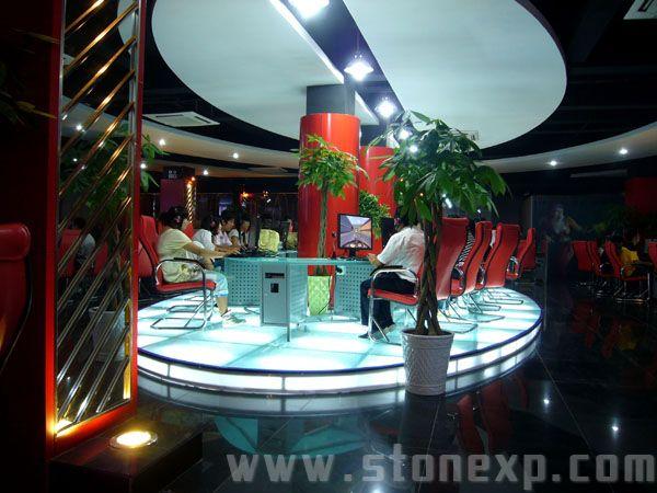 作為商業(yè)空間的要求,它都滿足了。時尚,吸引眼球,亮麗,帶來商業(yè)回報。同時又兼顧到藝術(shù)的氛圍。黑紅對比的運用,極富戲劇效果的發(fā)光地臺放佛是在網(wǎng)吧中央安排的T臺,吸引了全場目光。中央的包圓柱讓人想起那部感人的浪漫大片《泰塔尼克號》。卡座區(qū)的隔斷采用金色干枝配合鋼化玻璃,在燈光的映襯下讓卡座更加魅惑吸引人。接待前臺是個3/4圓的發(fā)光頂下面同樣形狀的銀色臺面。避開了傳統(tǒng)的高接待臺設(shè)計。在處理好空間劃分的同時讓客人進(jìn)門就眼前一亮。即使是商業(yè)空間,我們也傾向于加入情感的元素,讓不同的人進(jìn)來都有不同的想象。它仍然在述說著一個個故事!