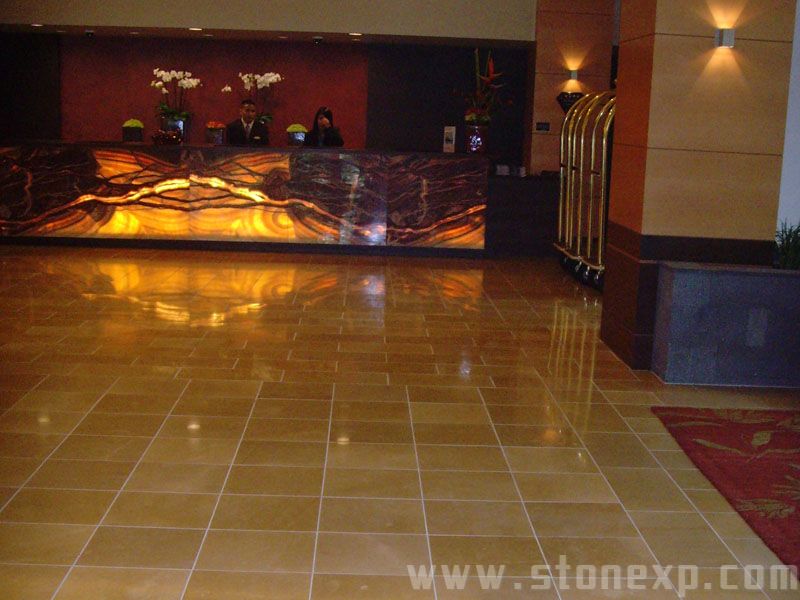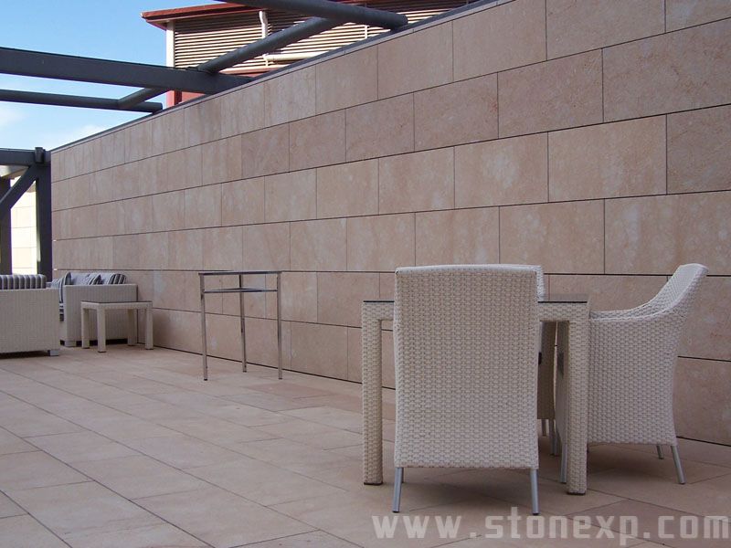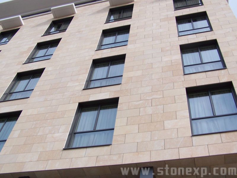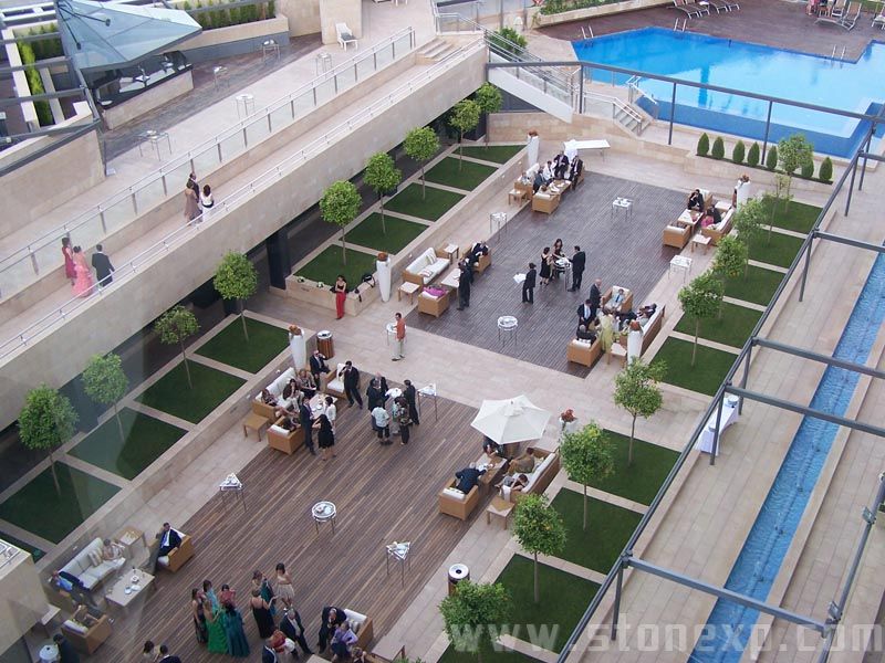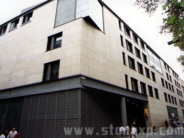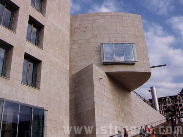 此石材工程主要天然石材的用料為法國紅砂石,整體的房屋建筑及廣場石材都是用了此同一種料,整體效果突出,不同紋路及顏色的拼接過渡自然。