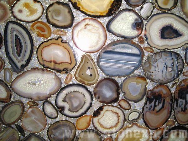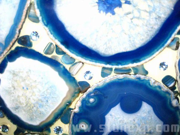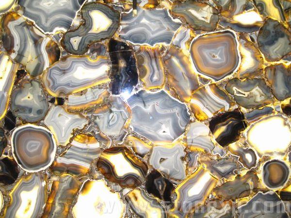 此組寶石拼板效果堪稱驚艷,令人不由得駐足欣賞,主要用于極致奢華的室內(nèi)裝飾。寶石拼板種類極其珍貴、稀少,拼板中的寶石是做首飾用的,國內(nèi)是由東莞環(huán)球石材集團(tuán)率先將其引入、開發(fā)成高端建筑裝飾材料,目前共有六個(gè)系列:貝殼、水晶、瑪瑙、化石、寶石、玉石。類似系列可以做,其它任何寶石系列也可以做;