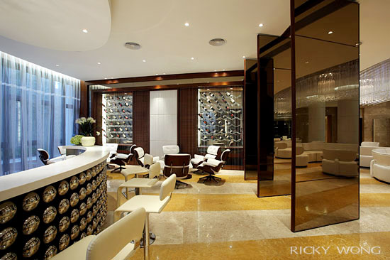私密的紅酒雪茄房,在旋轉門開啟后,變身為與大堂連通的水吧。