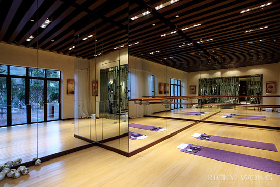 空間四周的清鏡,營造視覺的動態(tài)趣味與開闊,紫色瑜珈墊為空間注入一抹輕快的優(yōu)雅。