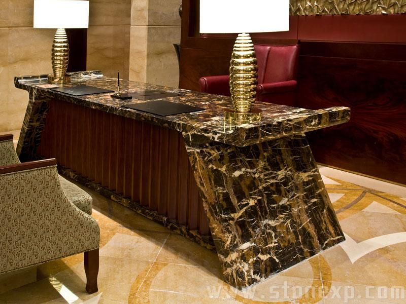 簡(jiǎn)單描述:用金網(wǎng)花制作的石材辦公桌高檔大氣,金色的條紋貫穿始終,突顯富麗堂皇,同時(shí)金黃色寓意能帶來(lái)財(cái)運(yùn),該產(chǎn)品應(yīng)用于青島香格里拉酒店工程。