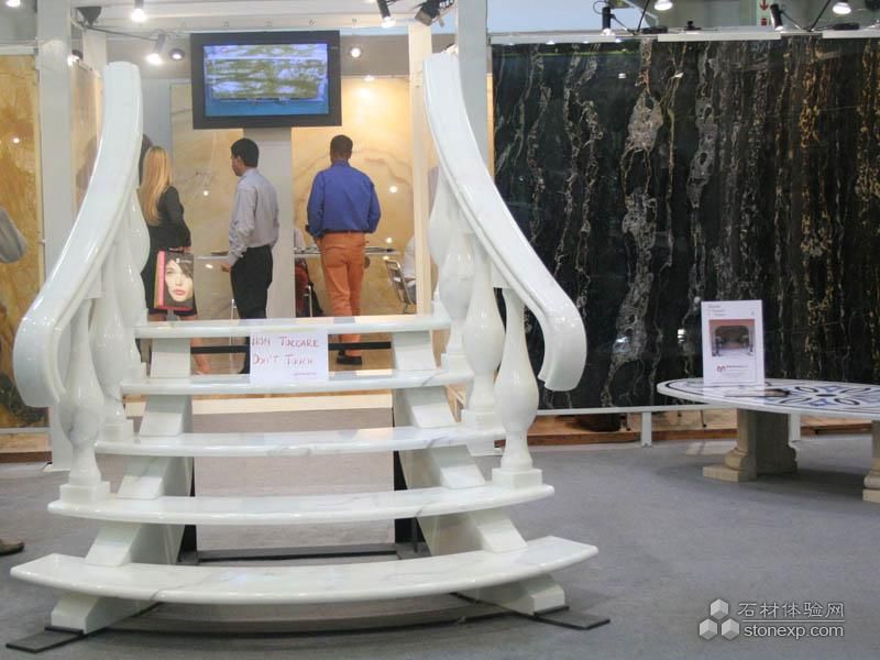 簡單描述:此款樓梯用純白玉石精心制作而成,其涉及的工藝也相當(dāng)多,如弧板工藝、圓柱工藝等,純凈的白色突顯高貴典雅氣息。