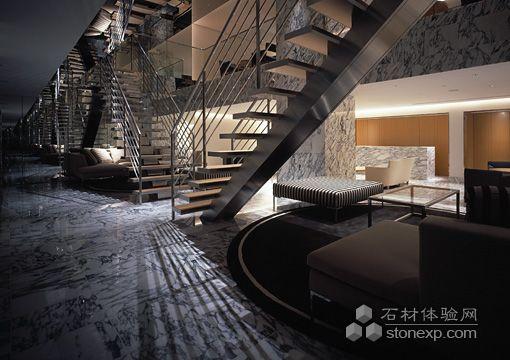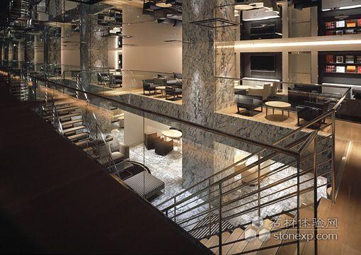 日本 TOKYO TOWERS 室內(nèi)設(shè)計(jì),石材運(yùn)用的又一經(jīng)典之作。大樓包含客房和休息區(qū)兩大區(qū)域。建筑內(nèi)的墻壁、樓梯、地板等大面積采用天然石材。雪花白的獨(dú)特紋理讓整個(gè)空間極具個(gè)性。