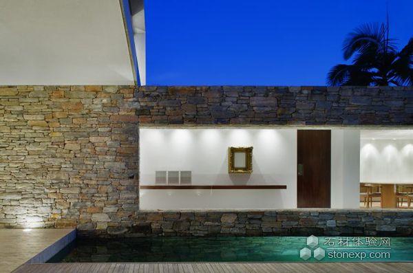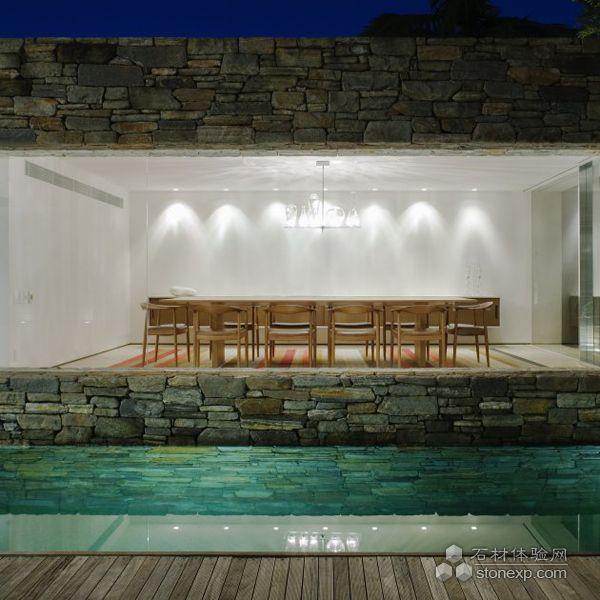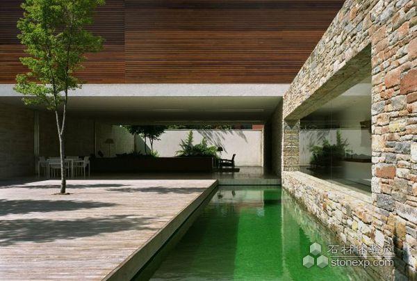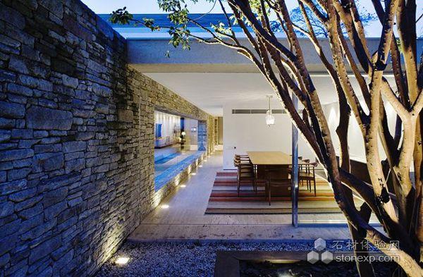 這個別墅給人的感覺就像來到了大自然,而且是鬧市里的一片大自然,讓人心曠神怡。外墻采用了天然石材,簡約的別墅建筑設計與功能化的室內(nèi)裝修,更能體現(xiàn)設計師的藝術(shù)創(chuàng)造力。