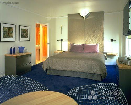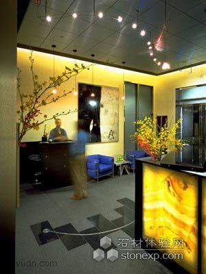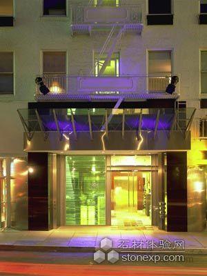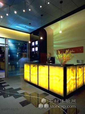 加利福尼亞州舊金山Diva旅館室內(nèi)設(shè)計(jì)。首先是一個(gè)完整的重新設(shè)計(jì)的入門(mén)門(mén)面,堆疊玻璃門(mén)面前面,一個(gè)彎的黑色花崗巖接待處與前面的鑲嵌的照明板和紅木包裹的電梯。前臺(tái)采用了透光石材,營(yíng)造一個(gè)戲劇性的審美的房間和走廊。