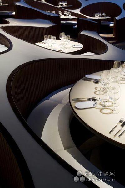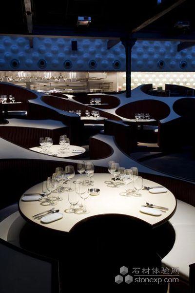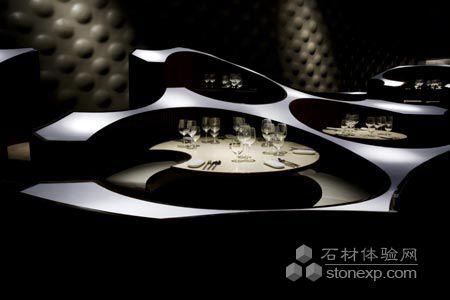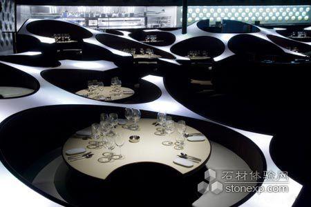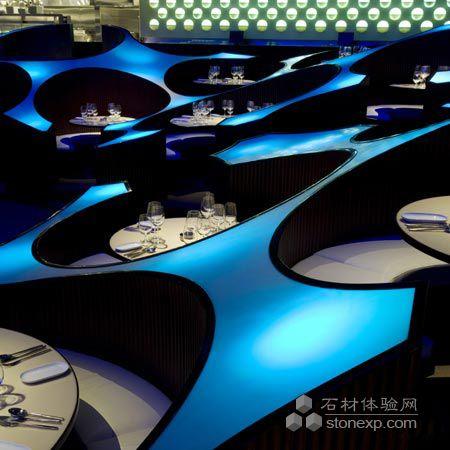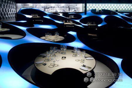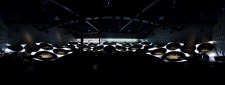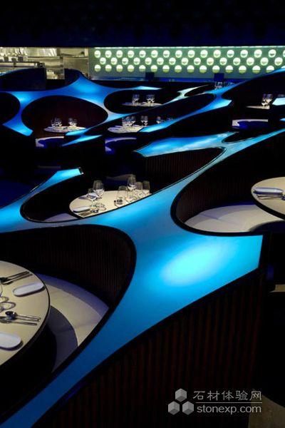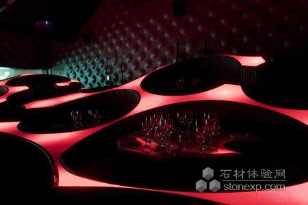 印度孟買藍蛙休閑酒廊被用來作為一個音樂場館,一個復(fù)雜的錄音工作室,一家餐廳,酒吧和現(xiàn)場音樂演奏的場地。不同大小的圓柱亭座椅之間容納4和10人,并安排在不同的高度,以便錯開各級高度的觀賞視線。反射燈光的8毫米壓克力板,反射出不同的燈光設(shè)計。崎嶇不平的觸感墻壁有助吸納噪音。