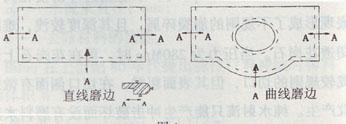 磨邊的方法有手工磨邊和機(jī)器磨邊。根據(jù)板材的平面形狀有直線和曲線磨邊。見圖一: