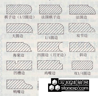 所謂磨邊,就是將板材的一條邊或幾條邊磨成具有幾何形狀的一種石材加工工藝。石材加工中常見的磨邊稱謂見下表: