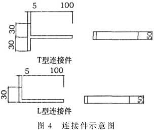 連接件分T型和L型兩種,均為定型產(chǎn)品/錳鋼構(gòu)件,形式見圖4。
