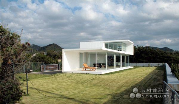House in Minami Boso是坐落在日本Peninsula半島南邊海岸的一座私人別墅,面向著一望無際的太平洋。白色的House in Minami Boso遠(yuǎn)看就像由一塊板折疊而成,這樣的設(shè)計不僅簡潔大方,而且也使建筑的上下兩層都能透過落地玻璃窗門得到全視覺的海景享受。在這樣的別墅里面觀賞海上的日出日落,簡直是視覺享受的一種極致,難怪房子的主人愿意住在這距離東京市中心2小時車程的地方。