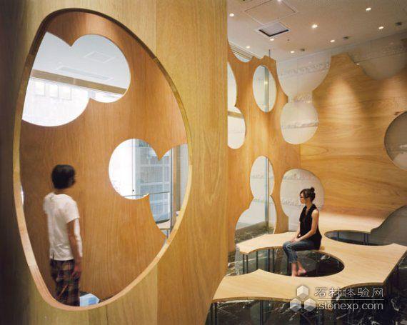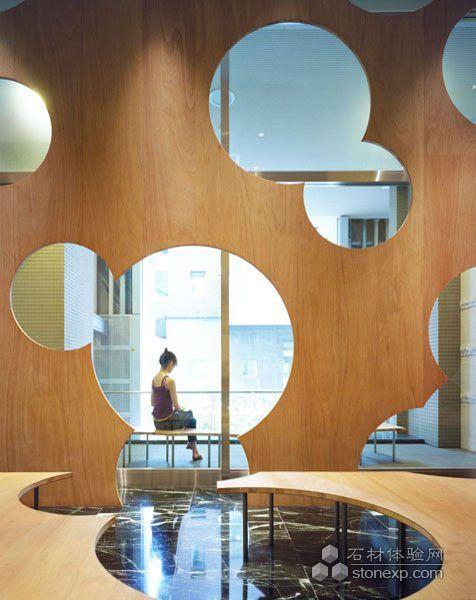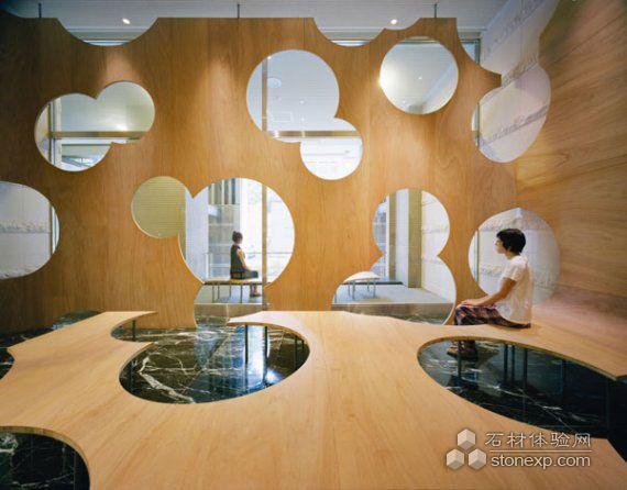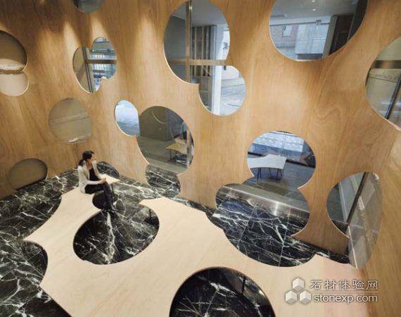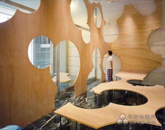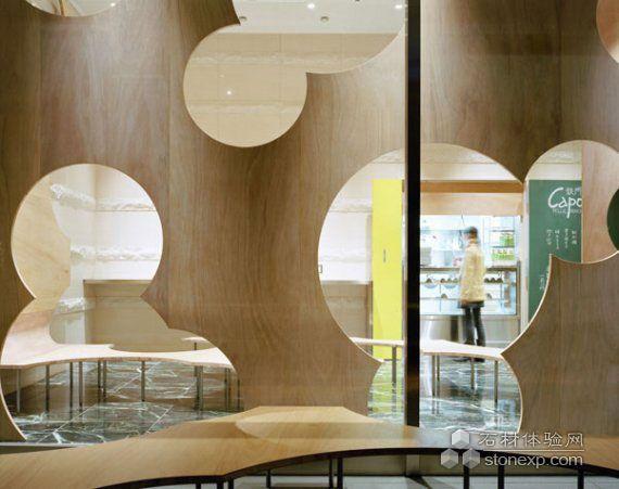 Torafu在東京大學(xué)設(shè)計(jì)了這個獨(dú)特的咖啡館室內(nèi)空間,甚至有人會覺得過于簡單。整個空間采用了深色石材作為地面,搭配淺色的木板。在燈光的照耀下卻是那么的個性十足。
