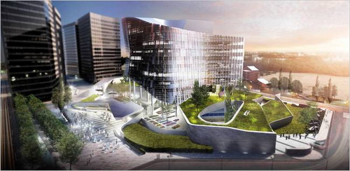 新的倫敦美國使館,位于泰晤士河邊,對(duì)岸是英國議會(huì)大廈。它將由美國費(fèi)城的基蘭-廷伯萊克建筑事務(wù)所(KieranTimberlake Associates)設(shè)計(jì)。