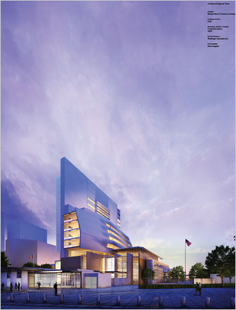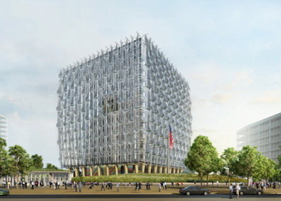 基蘭·廷伯萊克建筑事務(wù)所的獲勝設(shè)計(jì)方案,是一個(gè)銀色的立方體,前面有“護(hù)城河”。它的表面設(shè)置了遮陽和抗爆炸的玻璃窗。在2008年 11月份的一場(chǎng)有限的競(jìng)爭(limited competition)宣布,基蘭-廷伯萊克建筑事務(wù)所被選中。其他還包括“莫菲斯建筑事務(wù)所”(Morphosis Architects)、“貝聿銘-考伯-弗里德聯(lián)合建筑事務(wù)所”(Pei Cobb Freed & Partners)和“理查德-邁耶合伙建筑事務(wù)所”(Richard Meier & Partners)。它們?nèi)加?月份在華盛頓提交了設(shè)計(jì)方案。