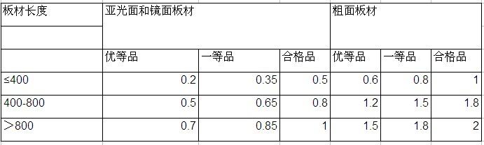 *在新頒布的國(guó)家標(biāo)準(zhǔn)GB/T 18601—2001《天然花崗石建筑板材》和建材行業(yè)標(biāo)準(zhǔn)JC/T 79—2001《天然大理石建筑板材》中,花崗石和大理石普型板的平面度允許公差分別見(jiàn)表1和表2: