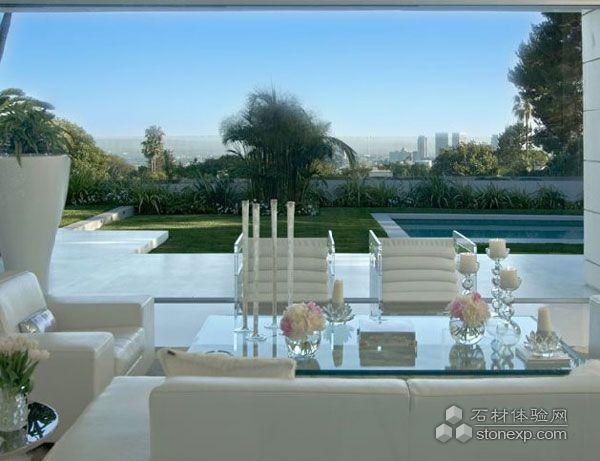 別墅位于加利福尼亞州Beverly莊園的山頂,并且剛剛進(jìn)行過現(xiàn)代風(fēng)格的翻修。別墅共分為室內(nèi)外兩個(gè)區(qū)域,室內(nèi)區(qū)域的開放空間包括餐廳,客廳,廚房等,并通過墻面上的玻璃門與戶外彼此開放,同時(shí)還包括主人套房,以及豪華的大理石浴室和雙廁。別墅的外部區(qū)域則設(shè)有巨大的草坪,花園,游泳池,露天陽臺(tái)和令人驚嘆的世紀(jì)城市全景等。室內(nèi)空間以白色為主,選用了白色的沙發(fā),白色大理石臺(tái)面,綠色植物,讓整個(gè)空間純凈而有活力。
