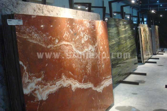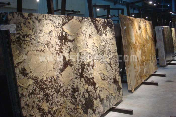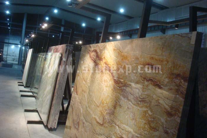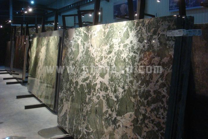 展廳展出的大板主要材質(zhì)為石英巖,其硬度有的甚至能與鉆石相媲美,顏色紋路變幻無(wú)窮,給裝修者無(wú)限的想象空間,并且很多顏色是石材行業(yè)中極其罕見(jiàn)色,開(kāi)采的礦山也極其有限,如有著湖水藍(lán)的“海冰藍(lán)”,每個(gè)人看都有不同暢想的“藍(lán)星云”等。