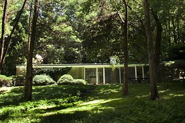 羅伯特-達(dá)莫拉是建筑師兼建筑攝影師。他翻修了這幢三臥室住房的地下室,以增加更多的生活空間,并且增加了全部玻璃墻。他還完成了住房的廚房和浴室(菲利普-約翰遜一直沒有完成)。他還增加了一幢有10英尺花板和一個20英尺天窗的獨立建筑物,作為他們夫婦的辦公室和攝影工作室。