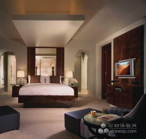 迪拜柏悅酒店共設有225套客房,35套豪華套房,每間套房都有一間開闊的起居區(qū)和一個豪華的帶卵形浴缸的浴室。設計師使每間客房都擁有極佳的視野,從陽臺或露臺上都可以看到迪拜海灣??腿酥蒙碛诰频陜?nèi)便能感受到光闊的大海,從而得到平靜、放松的感覺。