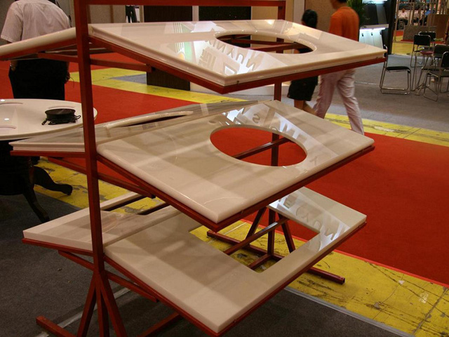 將該臺(tái)面板進(jìn)行逐塊檢驗(yàn),發(fā)現(xiàn)不合格品及時(shí)更換或返工。同時(shí)對(duì)于不是單個(gè)產(chǎn)品的組合臺(tái)面除了要求邊緣的光滑度,手感和板材的平整度等等之外,還必須要試拼一下組合起來,注意組合臺(tái)面間花色的統(tǒng)一,接口的拼合度,以及組合的左右順序,必須依照?qǐng)D紙準(zhǔn)確無誤。