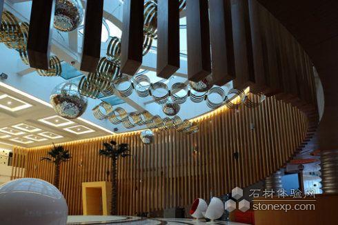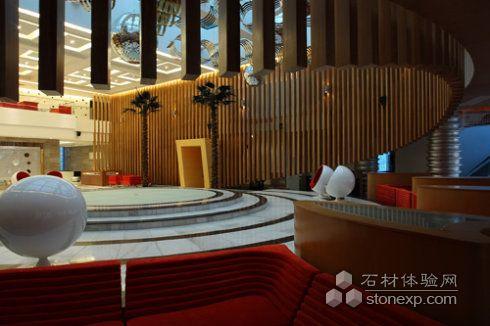 一層以空間中的舞臺為中心,使用“層層延伸、移步易景“的理念,與地面流動的線條相應成趣,形成若隱若現(xiàn)的層次結構和音樂的韻律;客人一走進大堂,就置身于耀眼的簇擁中,舞臺中的鋼琴如空間的主角驕傲地屹立在舞臺中央,鋼琴的每次跳動都與波浪形的木條幕墻遙相呼應,無聲的演奏著,充滿著會所的每個角落,令人心生震撼和感動(拍攝時鋼琴還沒有到位);洽談區(qū)的弧線造型與灰白色的時尚、簡約沙發(fā)構成“柳暗花明又一村”的意境享受,令人流連忘返,如同一首夢幻舞曲在空中回蕩著!