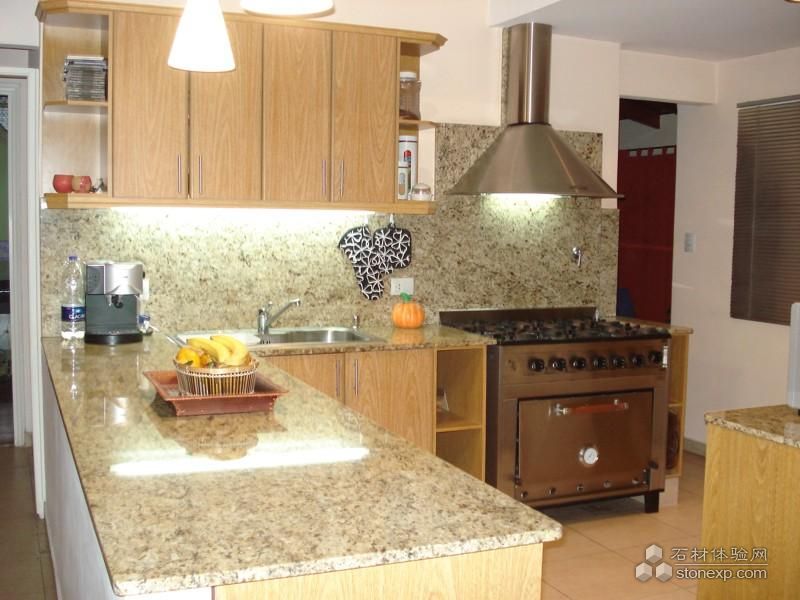 簡單描述:此組廚房臺面板使用的天然石材顏色淡雅,紋路均勻,使得整個廚房透露出清新自然的美感,石材臺面板硬度高,易清潔。