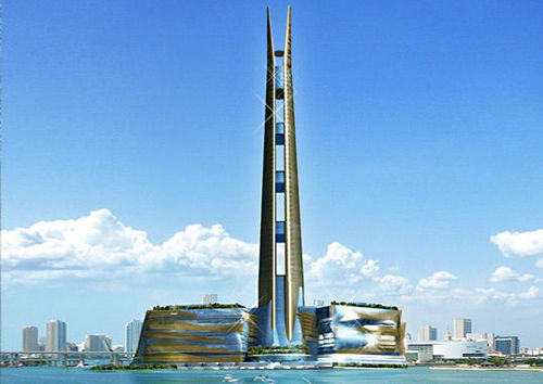 邁阿密計(jì)劃修建一座高達(dá)975米的摩天大樓,該大樓有望超過迪拜哈里法塔成為世界最高建筑。這座名為Miapolis大廈的建筑由Kobi Karp事務(wù)所負(fù)責(zé)設(shè)計(jì),整個(gè)主體建筑坐落在沃森島(Watson Island)上,是一座城中之城。Miapolis最吸引人之處在于它融入了目前最尖端的可循環(huán)系統(tǒng),屆時(shí)將是全美最大一幢通過LEED認(rèn)證的建筑。
