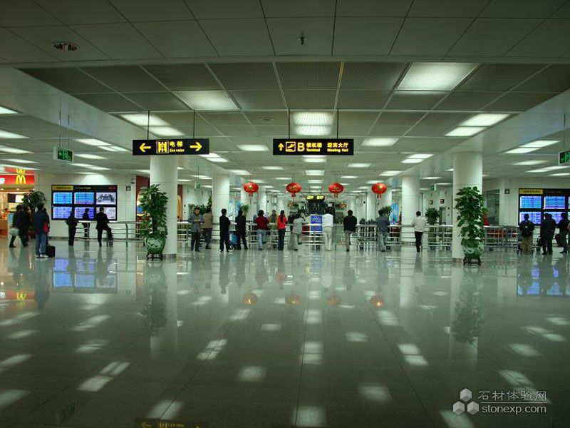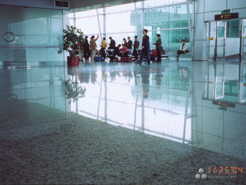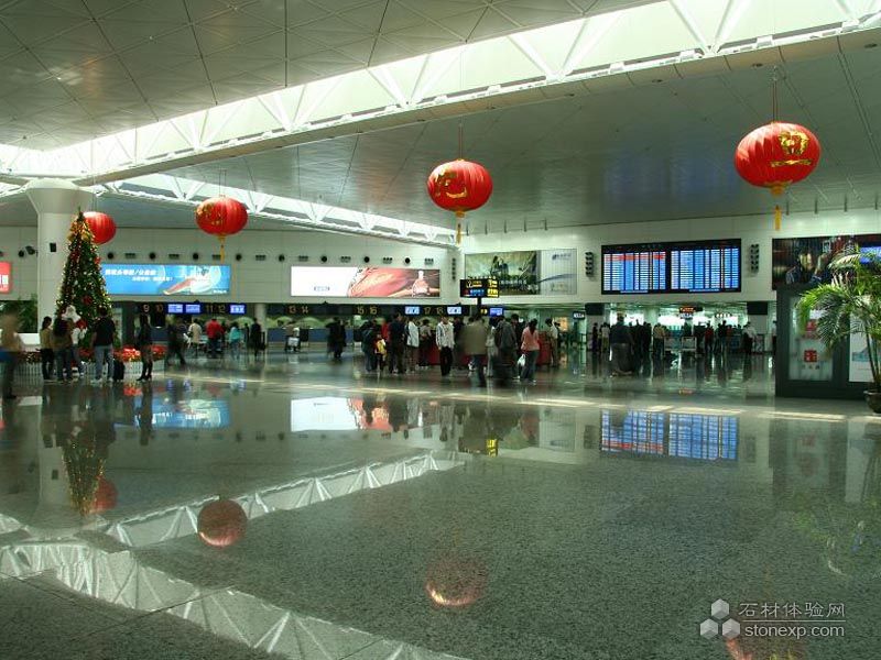 深圳機(jī)場大廳:選用瀚得公司自產(chǎn)品種藍(lán)豹花崗巖,用量約30000平方米。大廳整體鋪裝,花色一致,自然、光亮,高貴典雅。