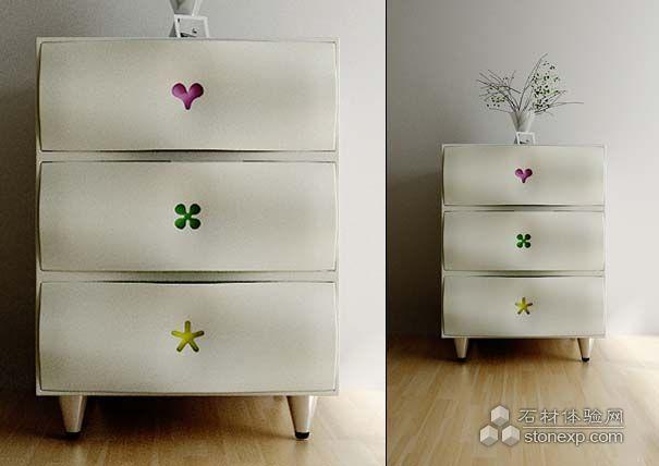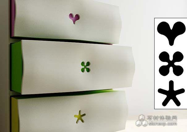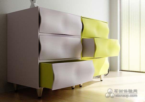 現(xiàn)在的生活越來越單調(diào),而現(xiàn)在的新產(chǎn)品卻不是乏味。就連抽屜的形狀也可以是波浪形的,心型、四葉草、六角形的標(biāo)志點(diǎn)綴下,越具現(xiàn)代色彩。容器的容量與框架的適度,即不占位置,也不失抽屜容量空間。一共有三個柜子,上下重疊,界限分明。五彩繽紛的色彩,任君選擇。