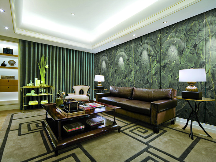 碧玉妝成,桂影婆娑。一樹(shù)幽綠夾著桂花香氣馨然襲來(lái),沁人心脾。青翠如玉,柔和似錦,醉人的碧與斑駁的樹(shù)影交相映襯,宛若草色入簾,苔痕上階。 碧桂園背景墻,應(yīng)用于北京西苑飯店會(huì)客廳,清新淡雅的紋路和顏色,裝飾出高貴淡雅的室內(nèi)空間效果,與墻面上書(shū)著的:“笙歌回輦處”交相輝映,和諧美好。 適用范圍:一般應(yīng)用于在室內(nèi)裝飾中,如臺(tái)面板、地面、墻面等。 |
