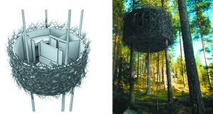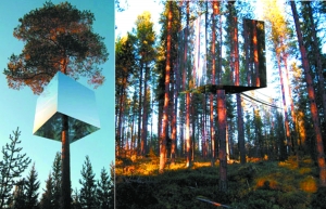 樹上酒店位于哈拉斯,北極圈以南60公里,定于17日正式開業(yè)。開業(yè)之初提供4個(gè)房間,分別起名“木舍”、“藍(lán)錐體”、“鳥巢”和“鏡立方”。