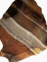2.帶狀瑪瑙:紋帶較寬的瑪瑙。呈單色出現(xiàn)者,即前述的紅瑪瑙、藍瑪瑙之類。但是,無色的帶狀瑪瑙不一定都能進行人工著色。當(dāng)前,在中國珠寶界一般不采用帶狀瑪瑙進行人工著色,而喜歡選用無紋帶的,實際上是玉髓內(nèi)的原料來進行這這種染色。