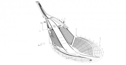 設(shè)計(jì)理念創(chuàng)造三個階段的視覺性:遠(yuǎn)處的全景,近處斜坡腳下的景象和從頂上看到的景象。項(xiàng)目的整體線條尖銳,剪裁簡約。