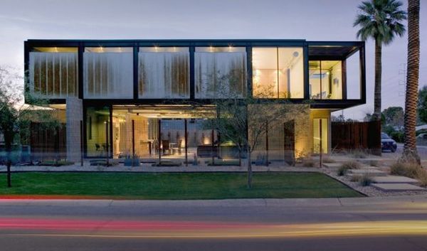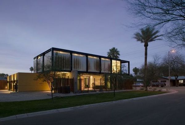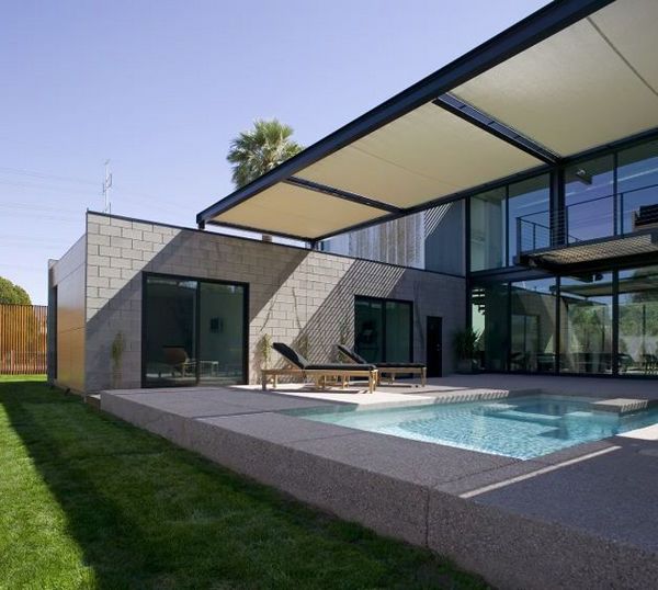 建筑主層的墻體定義主要的公共區(qū),這個(gè)公共區(qū)包括一個(gè)室外的院子,一個(gè)起居室,一個(gè)餐廳和廚房,一個(gè)錦鯉花園。公共區(qū)的側(cè)面是停車場和賓客臥室,這樣的設(shè)置能為住戶提供一些隱私,阻擋來自街道和鄰里的窺探。室外空間通過兩個(gè)滑動(dòng)玻璃門與住宅本身保持著一種開放的關(guān)系。