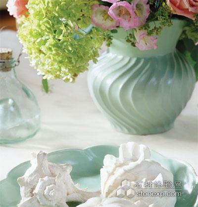 從桌圍到乳白玻璃質(zhì)地的糕點托盤,卷曲的線條透露在家里放幾只收納籃既實用又隨意,買一只手編籃出鄉(xiāng)村風(fēng)格的浪漫情愫。像這樣的奶油色陶器或乳白色瓷筐,噴上柔和的淡綠色,待漆干后用刷鍋的百潔絲摩擦,器與布藝餐椅搭配,最能營造餐桌上的輕松好時光。