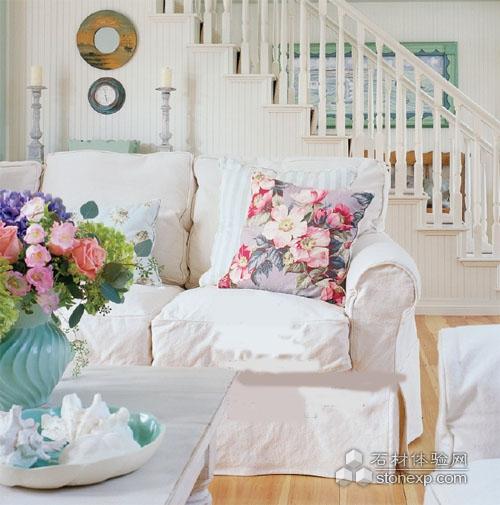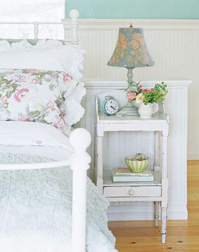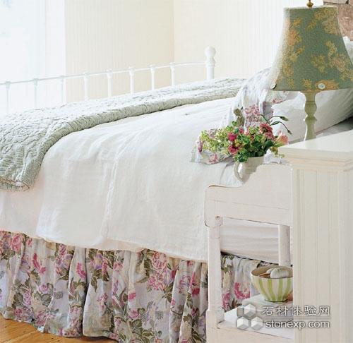 田園風(fēng)情少不了甜美氣息,印花的枕頭、鏤空的床罩、枕套邊的孔眼花邊以及燈罩上的紐扣裝飾都是使臥室變得甜美的細(xì)節(jié)裝飾。