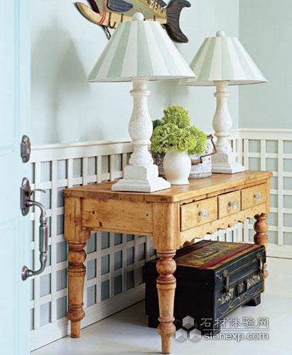 花園中的格柵搬進(jìn)居室,增加了居室的鄉(xiāng)村魅力系數(shù)。如果能買到現(xiàn)成的格柵圍墻再好不過,簡單木質(zhì)邊桌也顯得田園風(fēng)味十足。裝的時候在頂部和底部要加上飾邊起到固定的作用。